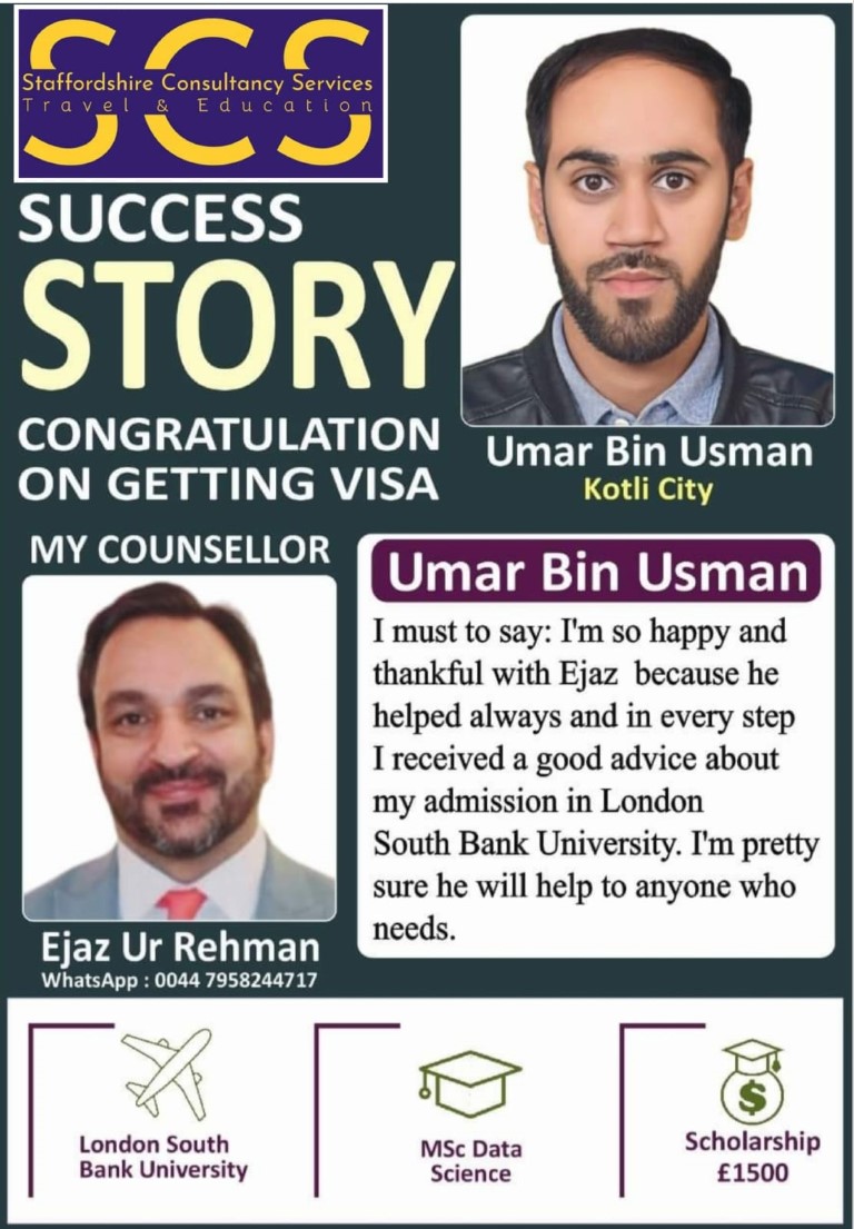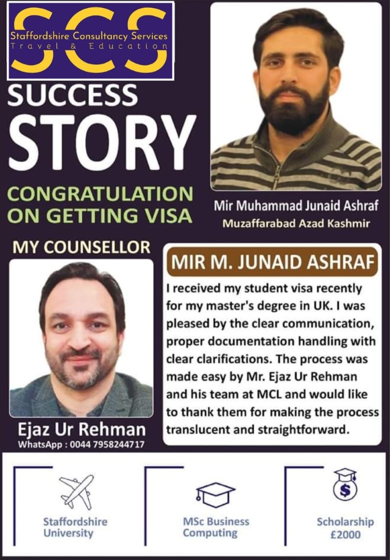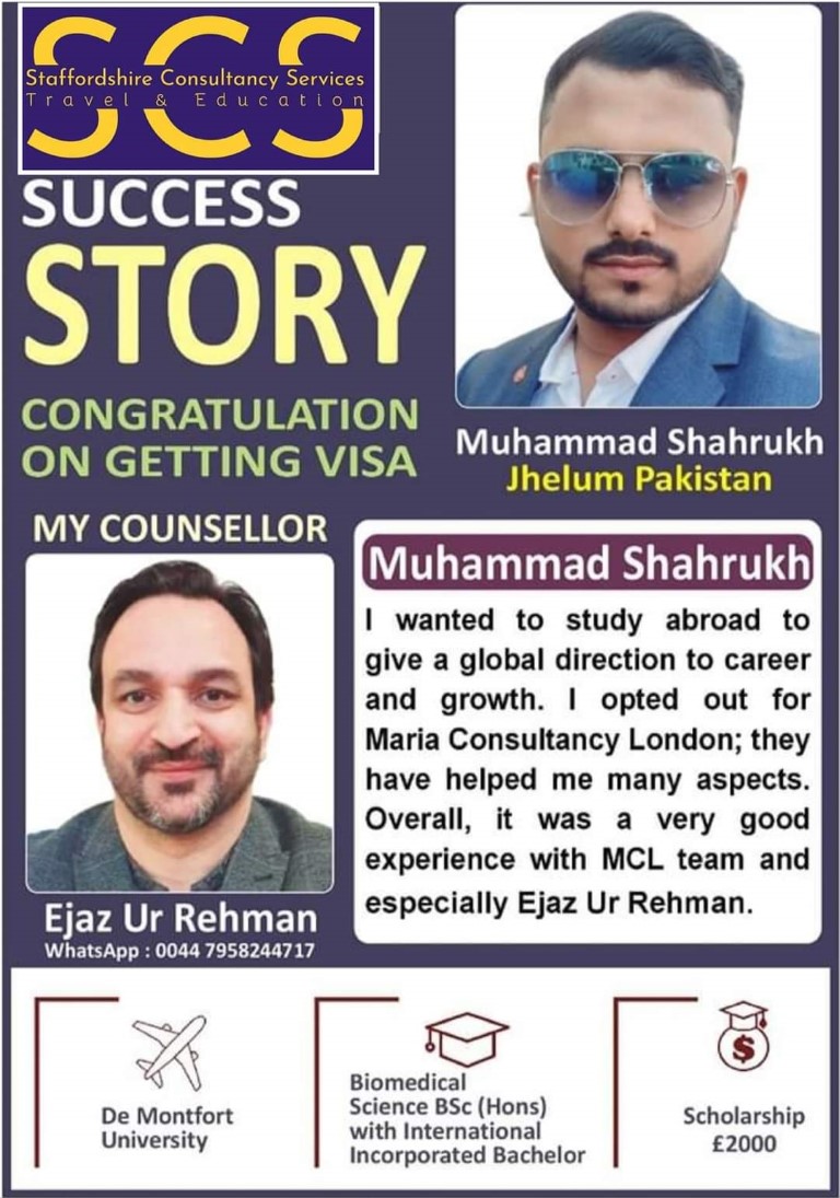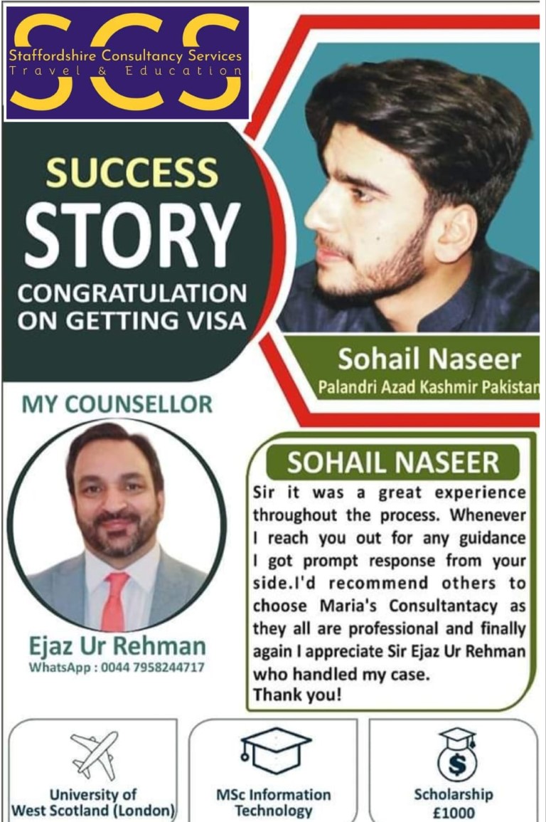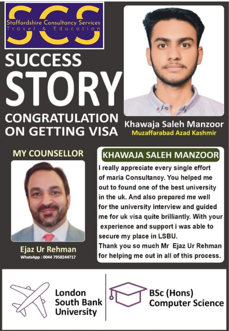 At Staffordshire Consultancy Services, we take pride in helping students from Pakistan and other countries pursue higher education in the UK. Our success stories reflect the dedication, hard work, and dreams realized by countless students who trusted us to guide them through the process.