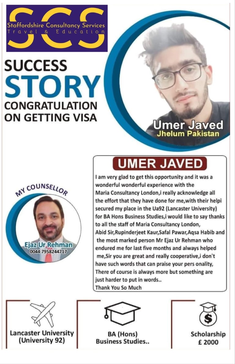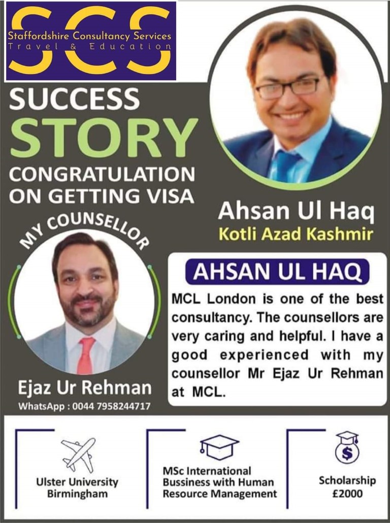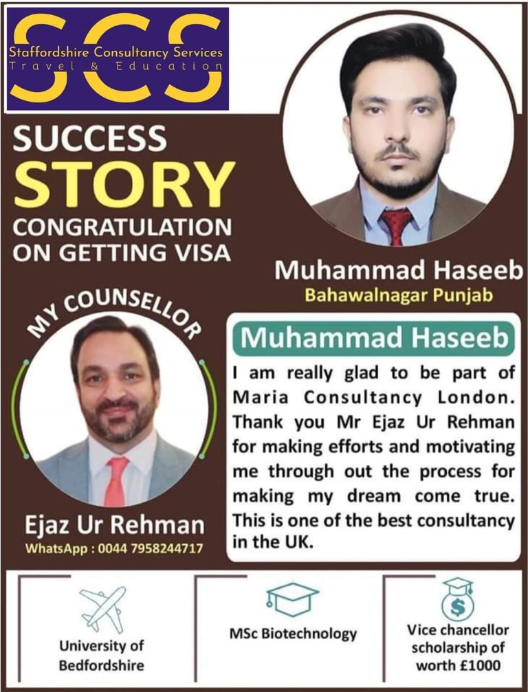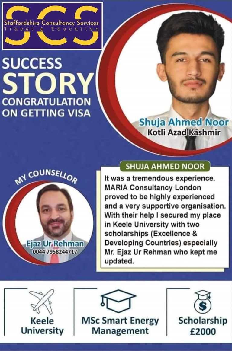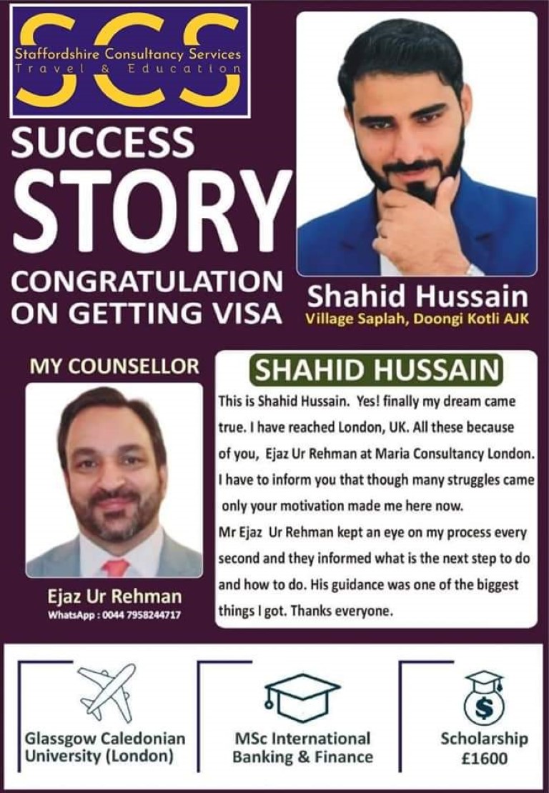 At Staffordshire Consultancy Services, we take pride in helping students from Pakistan and other countries pursue higher education in the UK. Our success stories reflect the dedication, hard work, and dreams realized by countless students who trusted us to guide them through the process.