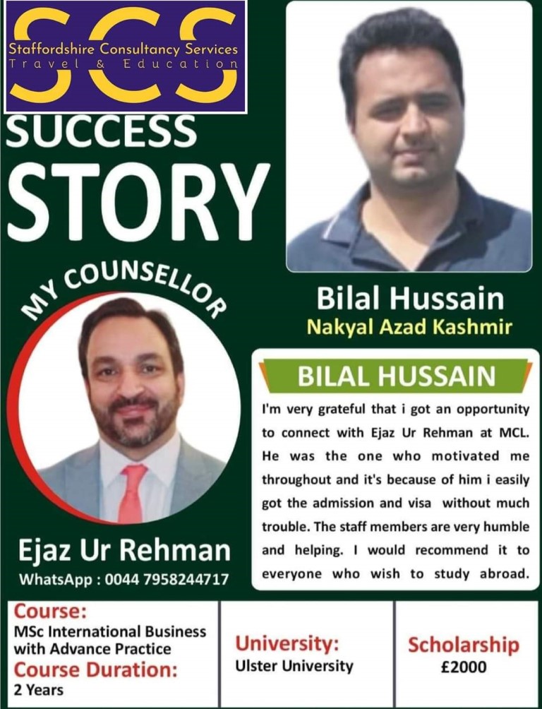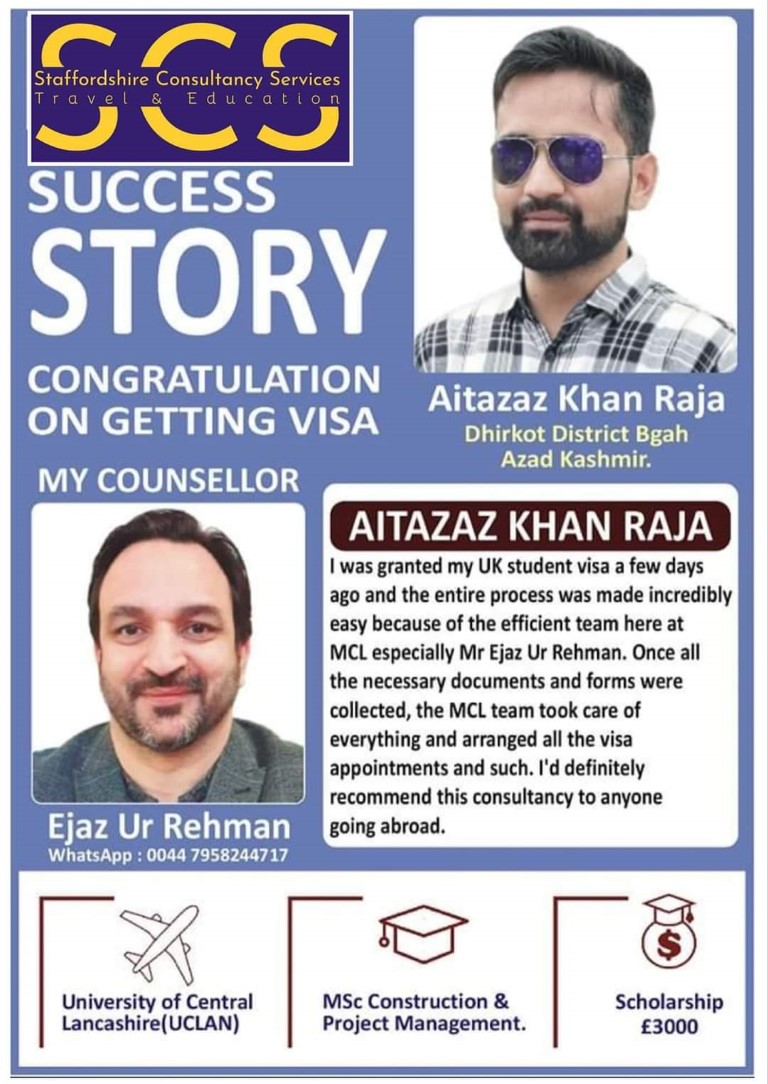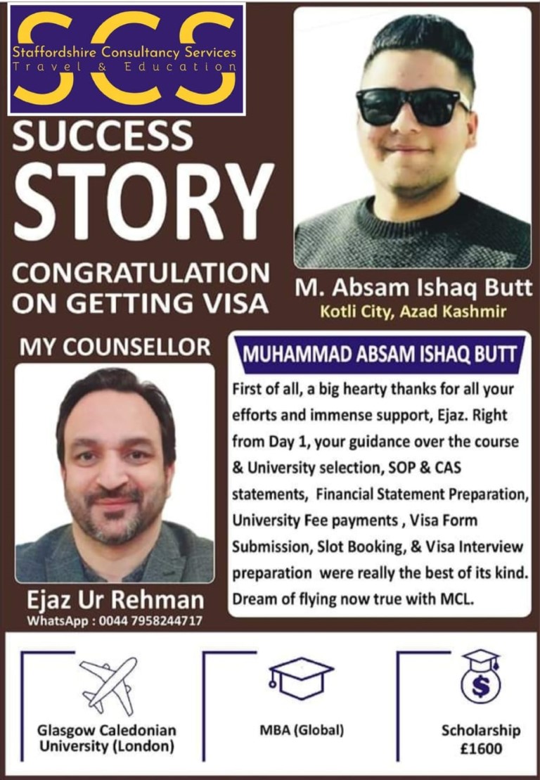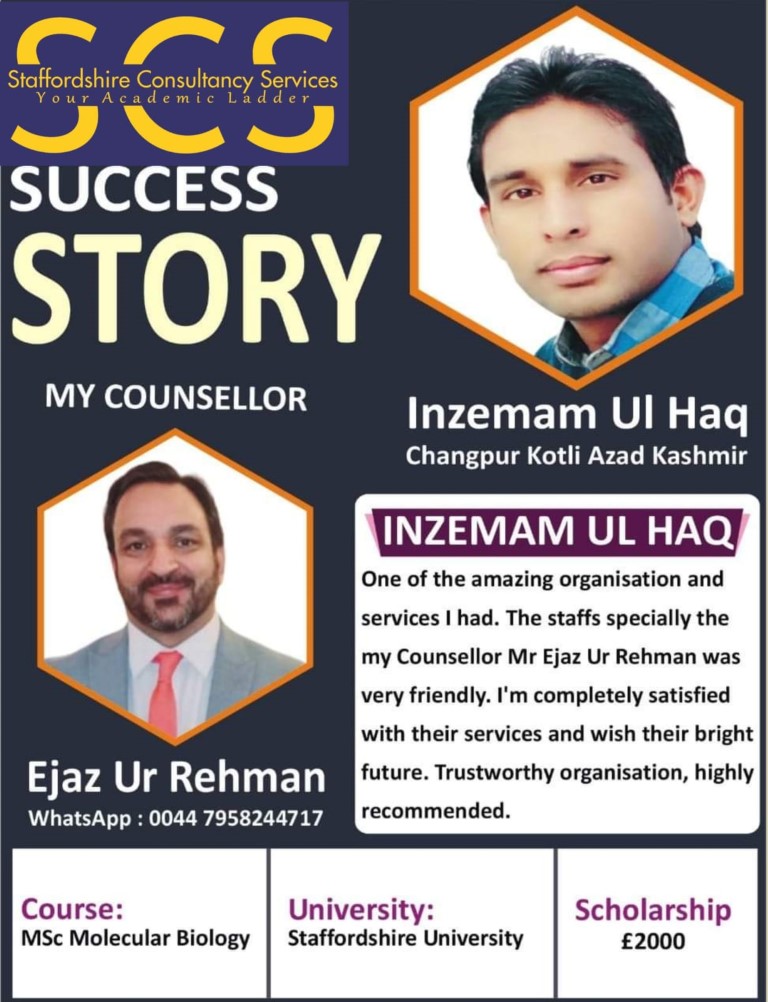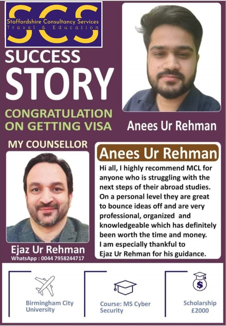 At Staffordshire Consultancy Services, we take pride in helping students from Pakistan and other countries pursue higher education in the UK. Our success stories reflect the dedication, hard work, and dreams realized by countless students who trusted us to guide them through the process.